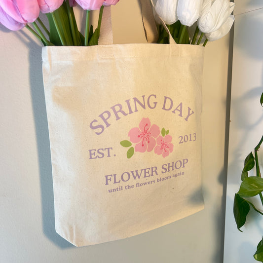 spring day flower shop cotton tote bag