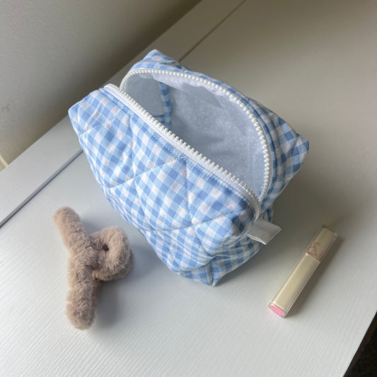 blue side quilted makeup bag - embroidery option