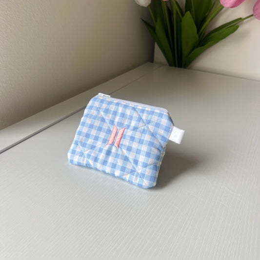 blue side quilted keychain wallet - embroidery option