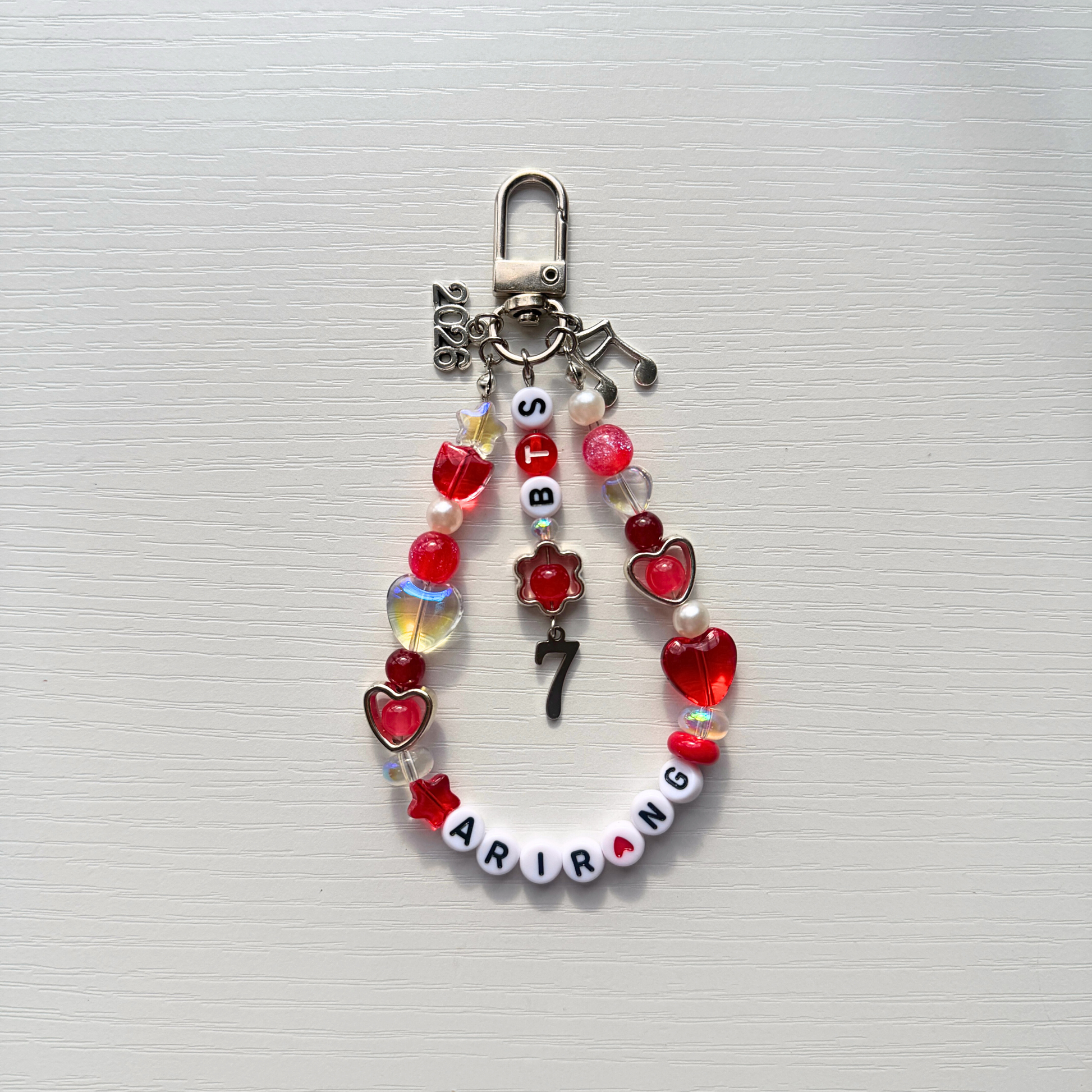 you may choose between a silver keychain attachment, and a silver phone charm attachment. please be aware that some beads are glass and you should be extra careful if you choose the phone charm attachment <3
